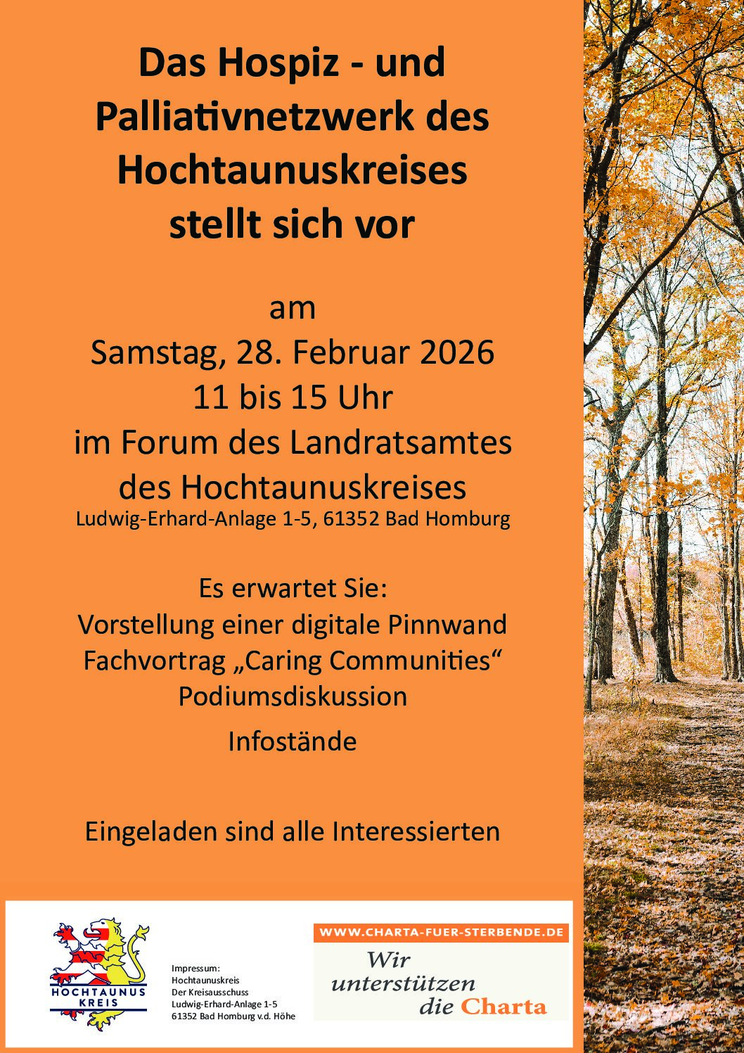 Der Bad Homburger Hospiz-Dienst e.V. lädt seine Mitglieder herzlich zur diesjährigen Mitgliederversammlung ein. Die Versammlung findet am 17. März 2026 statt. Neben dem Rückblick auf das vergangene Vereinsjahr stehen Berichte […] |